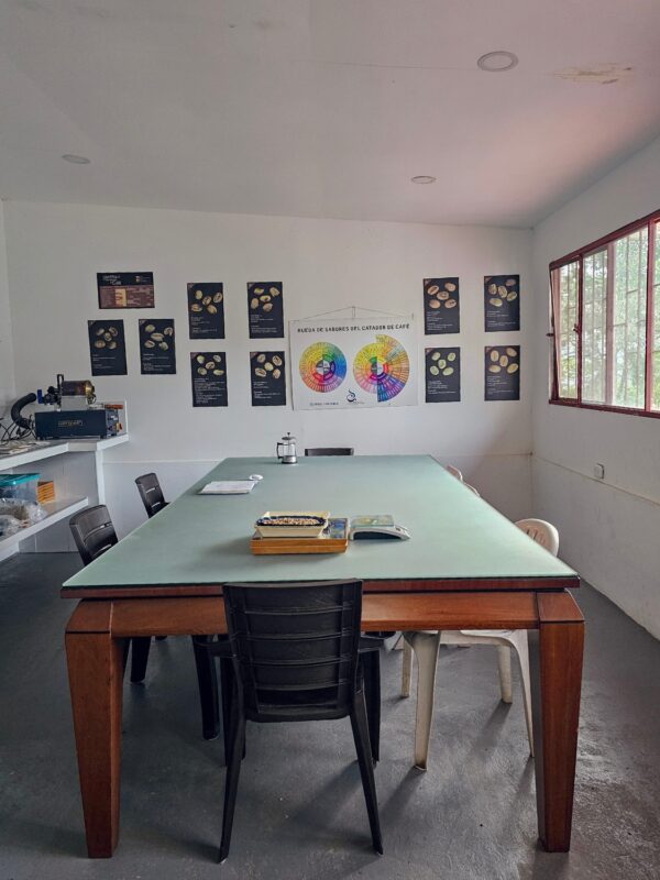 Empezamos por el cultivo de café. En el recorrido aprendimos sobre el color de los frutos, el momento adecuado para recogerlos y las temporadas de siembra y recolección. Enseñanzas esenciales para aprovechar al máximo la siguiente parada, el laboratorio de tostión, un espacio en el que se puede ver la transformación del fruto en grano y aprender sobre las tonalidades para el producto final.